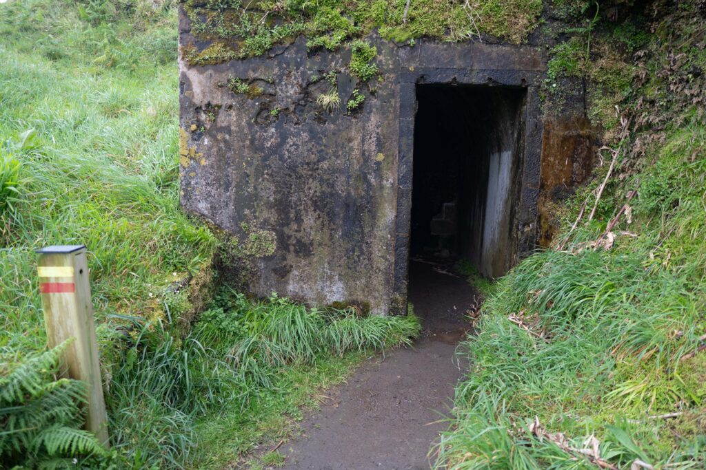 Irgendwann laufe ich direkt über eine Wiese und dann in eine Senke. Plötzlich stehe ich vor einem Tunneleingang.