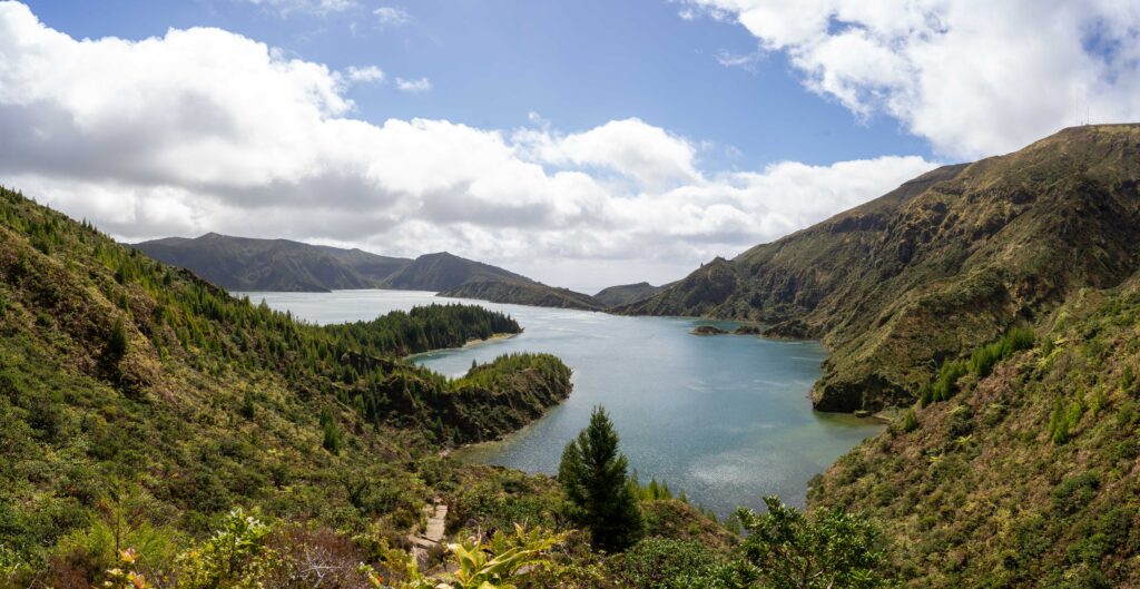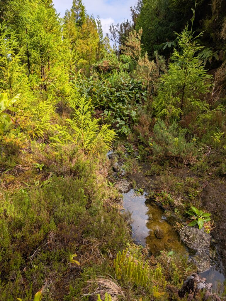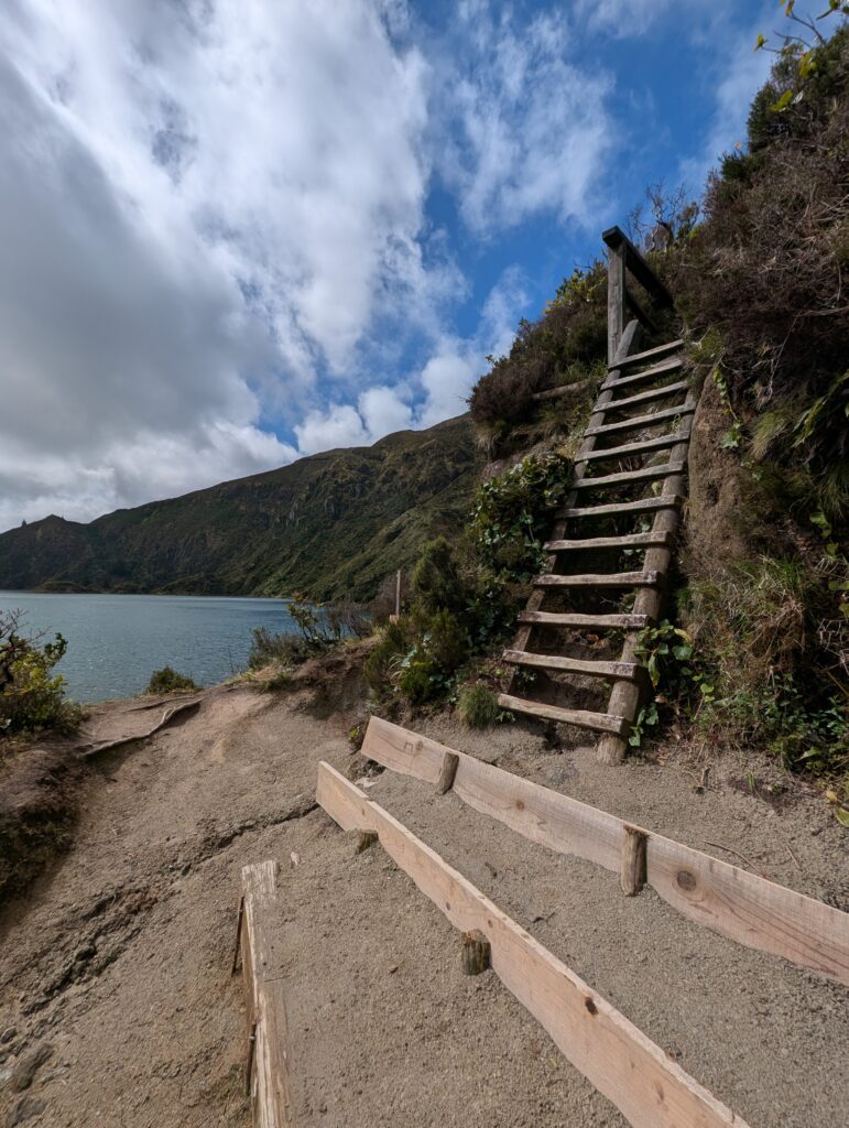 Ich habe mir vorgenommen, in diesem Urlaub viel zu wandern. Zu diesem Zweck habe ich mir Komoot auf dem Handy installiert. Eine Wander-App. Man zoomt irgendwo in die Landkarte, sucht sich in der Region eine Route aus, fährt dort hin und läuft los. Soweit, so einfach. Natürlich ist das Ding nicht kostenlos. Es will mir beim Start direkt ein Abo verkaufen. Ich starte erstmal die kostenlose Probewoche. Mein Ziel ist ein Vulkankrater, die Lagoa do Fogo. Von diesen Kratern gibt es hier sehr viele. Die Strecke ist ein etwa sechs Kilometer langer Rundweg. Nach ein paar Minuten spricht mein Handy in der Hosentasche und sagt mir, ich soll jetzt rechts von der Straße auf den Wanderpfad abbiegen.