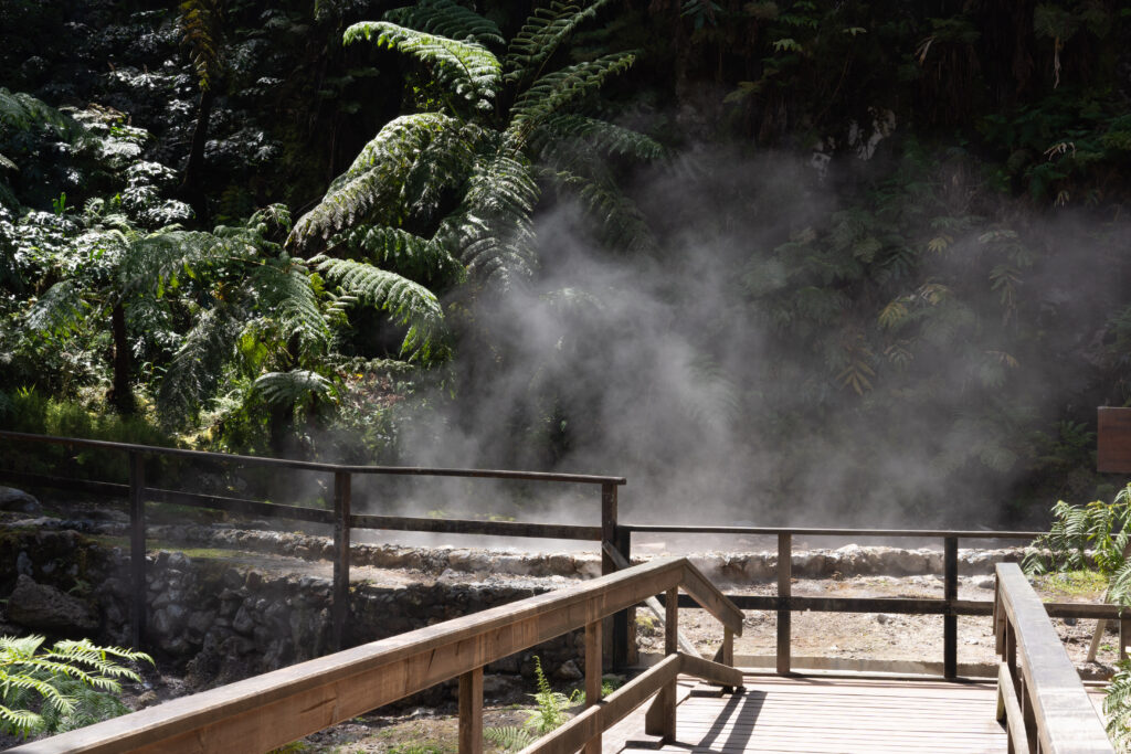 Ich laufe die Straße wieder zurück und noch ein Stück weiter. Auf einer Hinweistafel wird noch eine weitere Sehenswürdigkeit angepriesen. Heiße Quellen und ein Wasserfall. Ein paar Kilometer später stehe ich vor dem Eingang eines Parks. Die Quellen und der Wasserfall kosten Eintritt. Da es die letzten Tage nur wenig geregnet hat und man deshalb nicht baden kann, darf ich für nur 3 Euronen rein. Für den wirklich schön angelegten Park fand ich den Preis fair.