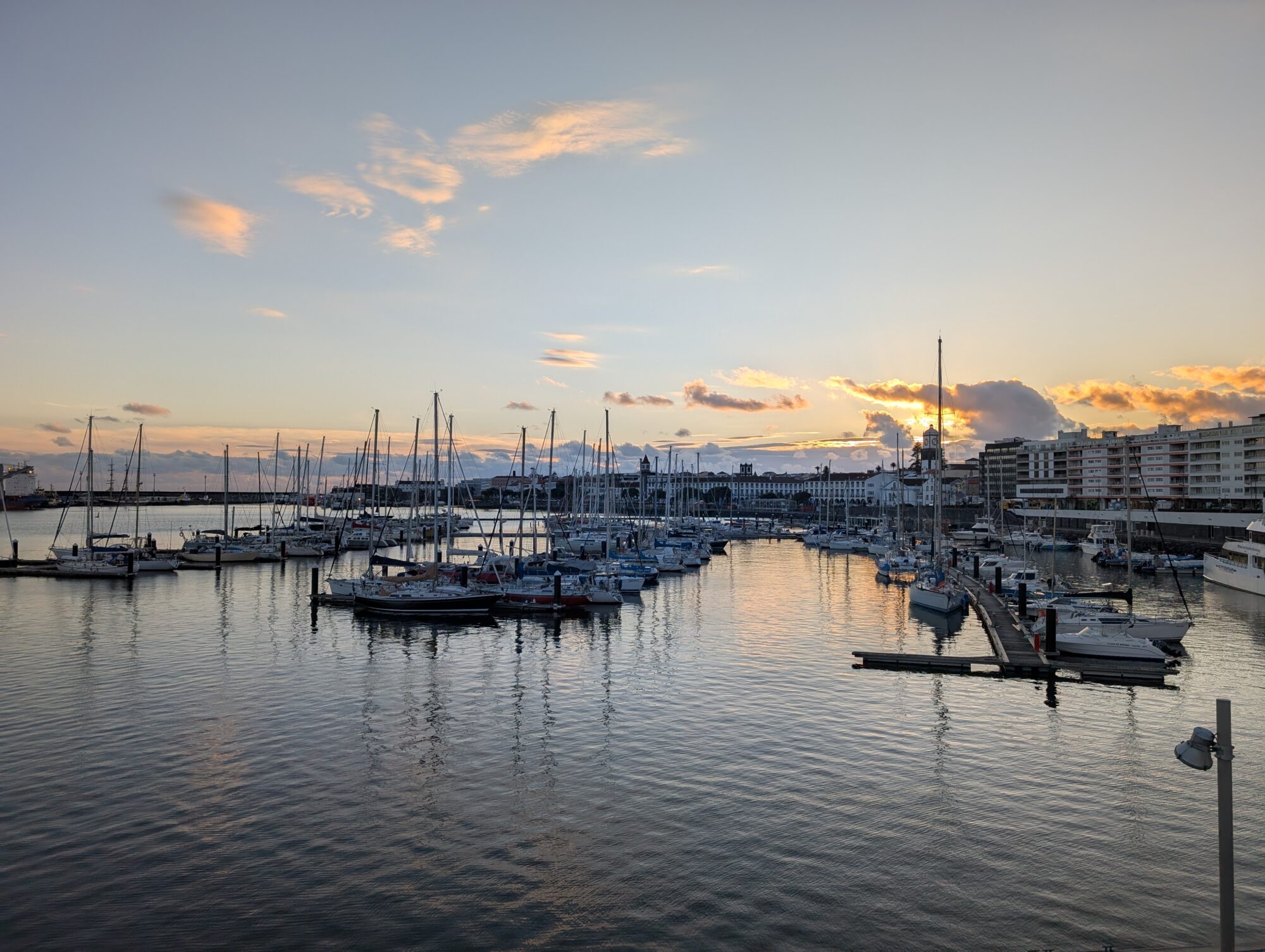 Es kommt mir so, vor als wäre es gestern gewesen, dabei sind es schon vier Jahre. Am 13. Juli 2022 mußte ich lebewohl sagen und Jörg alleine auf Sissi zurücklassen. Meine Urlaubstage waren aufgebraucht. Zumindest konnte ich den langen Schlag von Guadeloupe zu den Azoren segeln und dann noch viel schöne Zeit auf Faial, Terceira und São Miguel verbringen. Die Azoren waren landschaftlich für mich eines der Highlights dieser langen Reise. Jetzt bin ich wieder hier. Nicht mit dem Boot, sondern geflogen. Viele schöne Erinnerungen geistern durch meinen Kopf. Während ich von meiner Ferienwohnung aus gemütlich in Richtung Marina spaziere, fasse ich einen Entschluß. Ich werde nun selbst einen Reiseblog schreiben. Der Anfang ist dort, wo Jörg damals das letzte Kapitel mit mir an Bord der Sissi geschrieben hat.